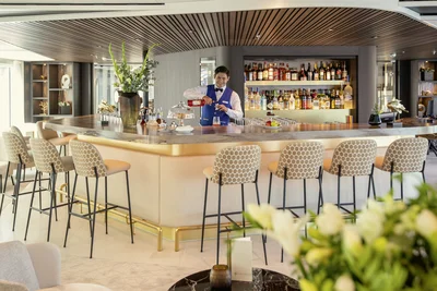Each cabin features a spacious bathroom with a walk-in shower, luxurious Rituals bath products, and a hair dryer, along with a fixed panoramic window that fills the space with natural light. Thoughtful touches like a comfortable double or twin bed, generously-sized wardrobe, secure in-room safe, flat-screen TV, individual climate control, well-stocked minibar and direct dial telephone ensure a restful and well-equipped stay.